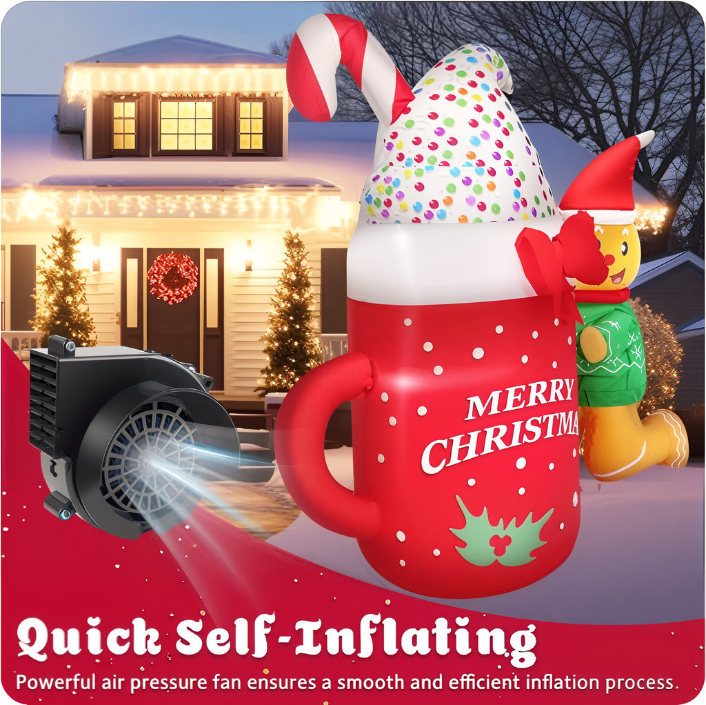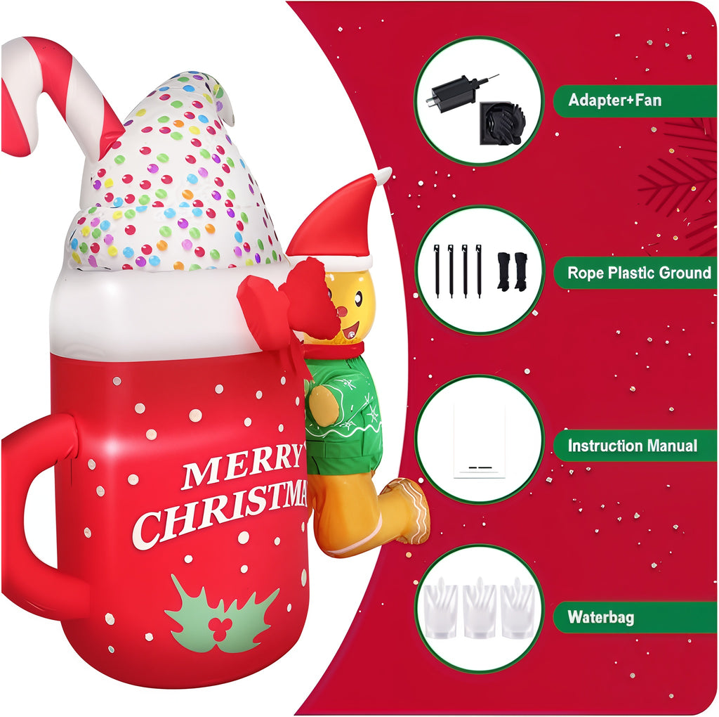 • 4.6FT tall inflatable Christmas ice cream cup design with gingerbread men