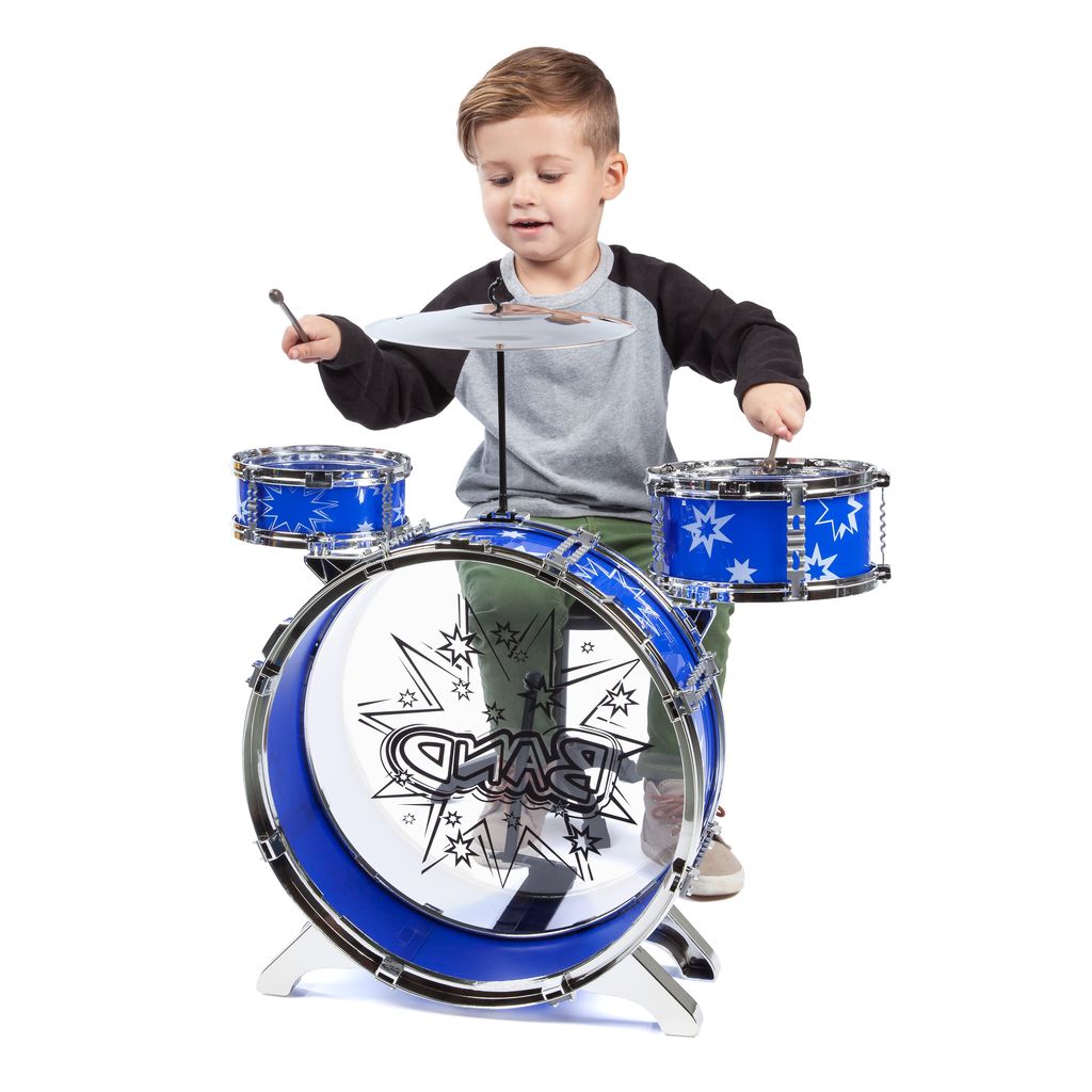 Spark musical creativity with the Big Band Kids Drum Set, a fun and energetic beginner kit designed for young drummers. This child-friendly set includes multiple drums, a cymbal, and drumsticks, giving kids everything they need to explore rhythm, coordination, and sound — just like a real percussionist.