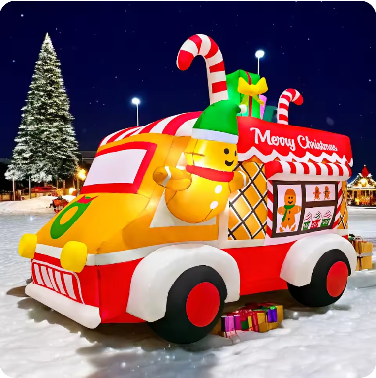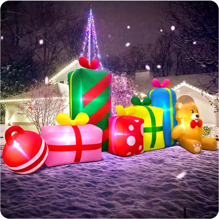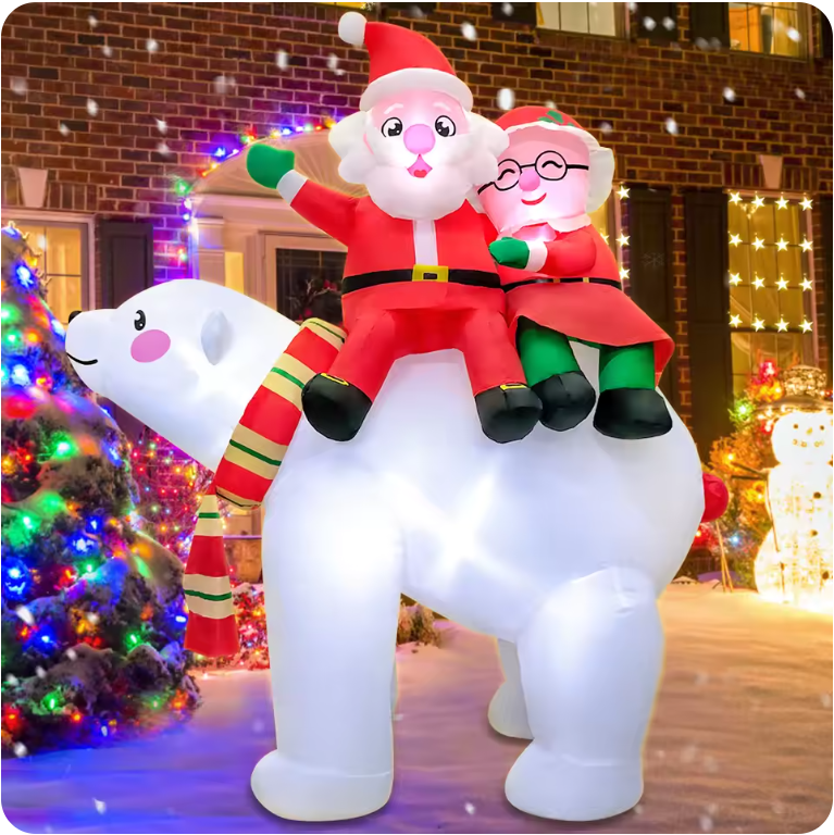 Made from durable, weather-resistant materials, these inflatables are easy to set up and store, making them perfect for outdoor displays, lawn decorations, and Christmas parties.