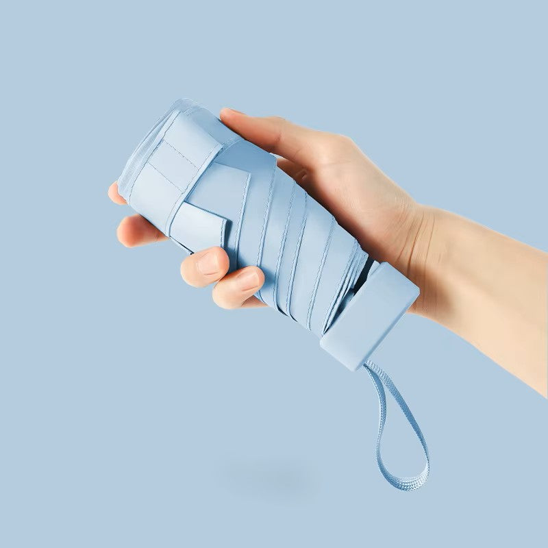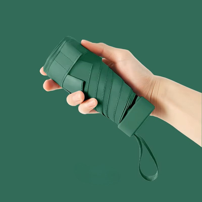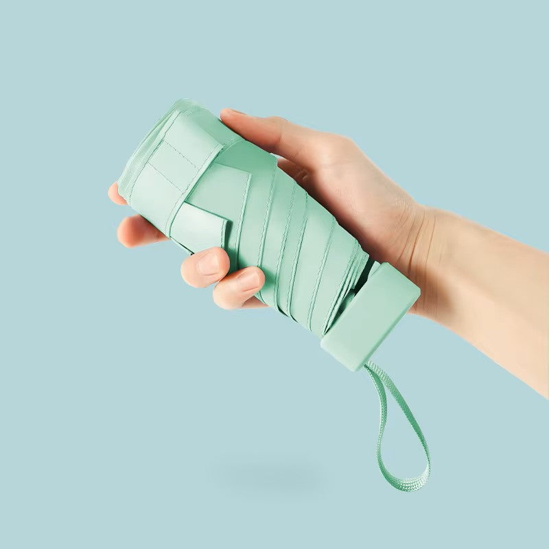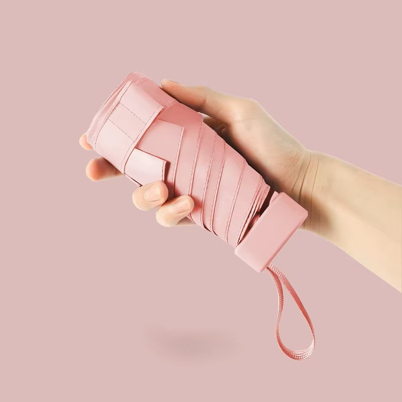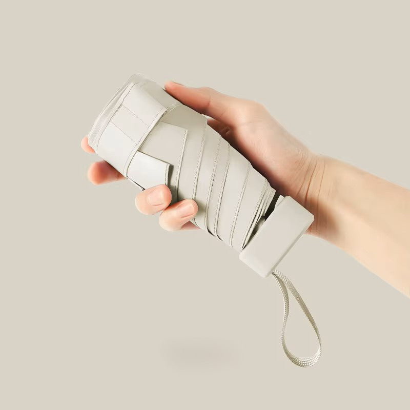 Dual-Use Women’s UV Protection Compact 6-Fold Umbrella – Sun & Rain, Black Coating, Flat Design