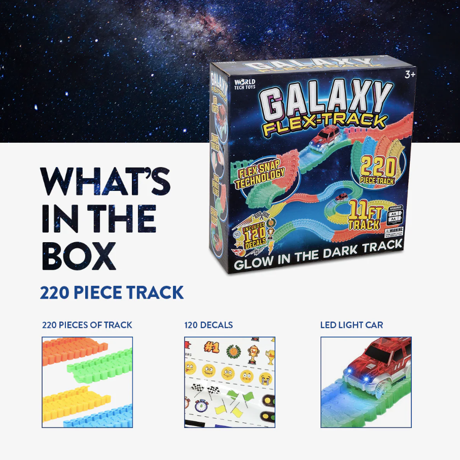 Galaxy Flex Track Glow-in-the-Dark Race Set – 220 Pieces with LED Light Car