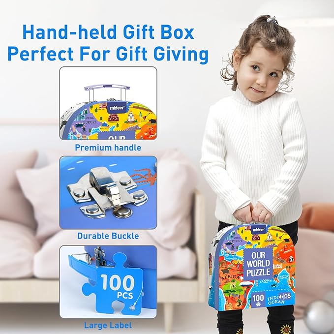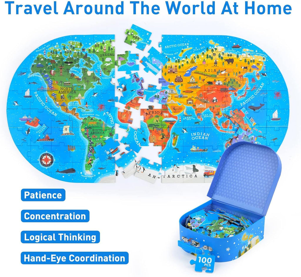 Spark curiosity with this vibrant world map floor puzzle, thoughtfully designed for children ages 4 to 8. Composed of 100 thick, durable pieces, it features continents, geographical landmarks, animals, plants, and cultural icons—fostering learning through interactive play.