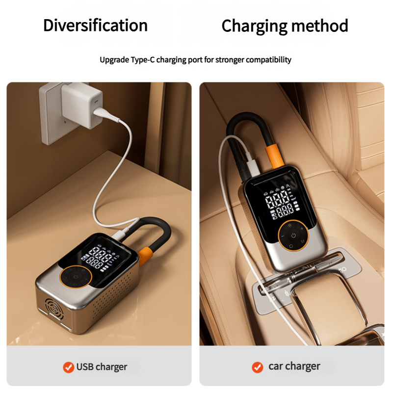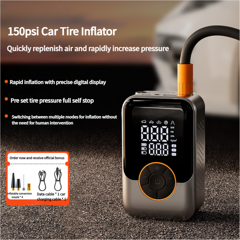 With multiple nozzle attachments, it supports tires, sports balls, and inflatables alike. The cordless design and built-in rechargeable battery make it perfect for travel, emergencies, or daily convenience. Small enough to fit in your glove box, powerful enough to inflate a car tire in minutes.