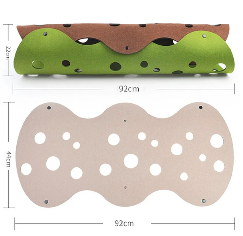 Transform your cat’s playtime with this Modular Felt Cat Tunnel & Bed, a creative and customizable play structure that can be shaped into over 99 different designs. Made from soft yet durable felt panels, it easily connects to form tunnels, caves, mats, or cozy hideouts—perfect for curious cats who love to explore, rest, and play.