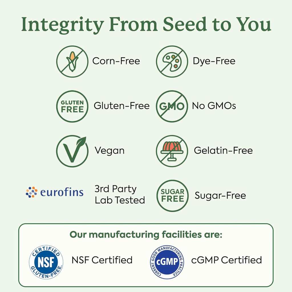 Vegan, non-GMO, gluten-free, no corn syrup, dyes, gelatin. Lab-tested and produced in the USA.