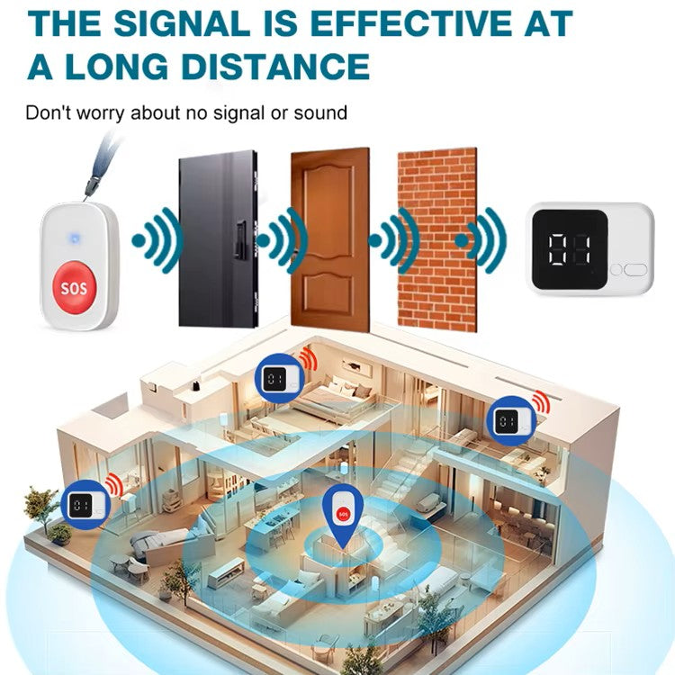Ensure safety and peace of mind with this Portable Panic Wireless Alarm Button + Receiver Nurse Alert System. The compact panic button can be pressed instantly to send a wireless alert to the caregiver's or nurse’s pager/receiver, enabling fast response even across distances. With a wide signal range, multiple channel support, and simple one-button activation, this system is ideal for caregivers, seniors, home care settings, clinics, or assisted living facilities. Easy to install, reliable, and scalable — always be reachable when help is needed.