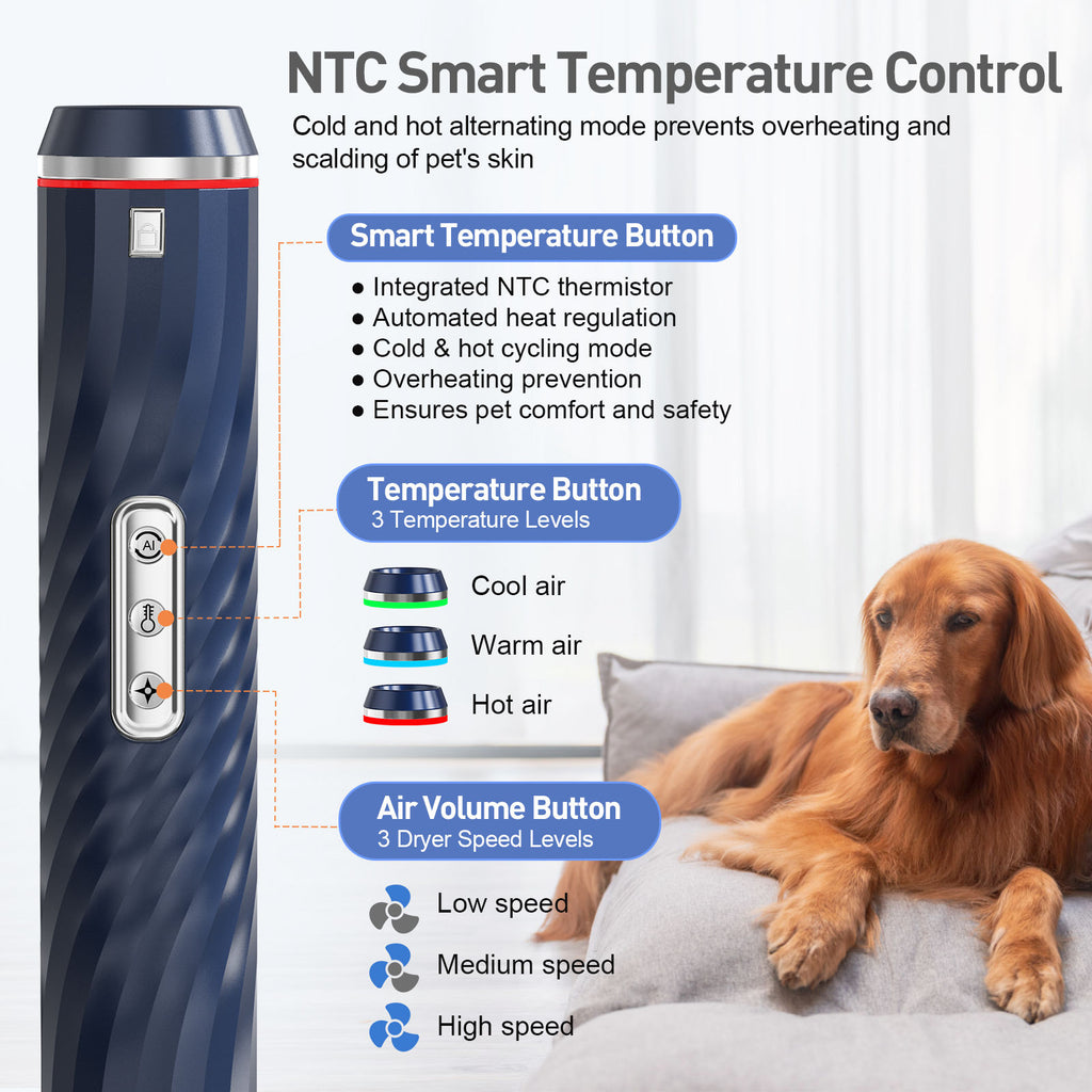 Portable Pet Hair Dryer – 3-Temperature Adjustable Grooming Blower with Rotatable Head & 4 Nozzles