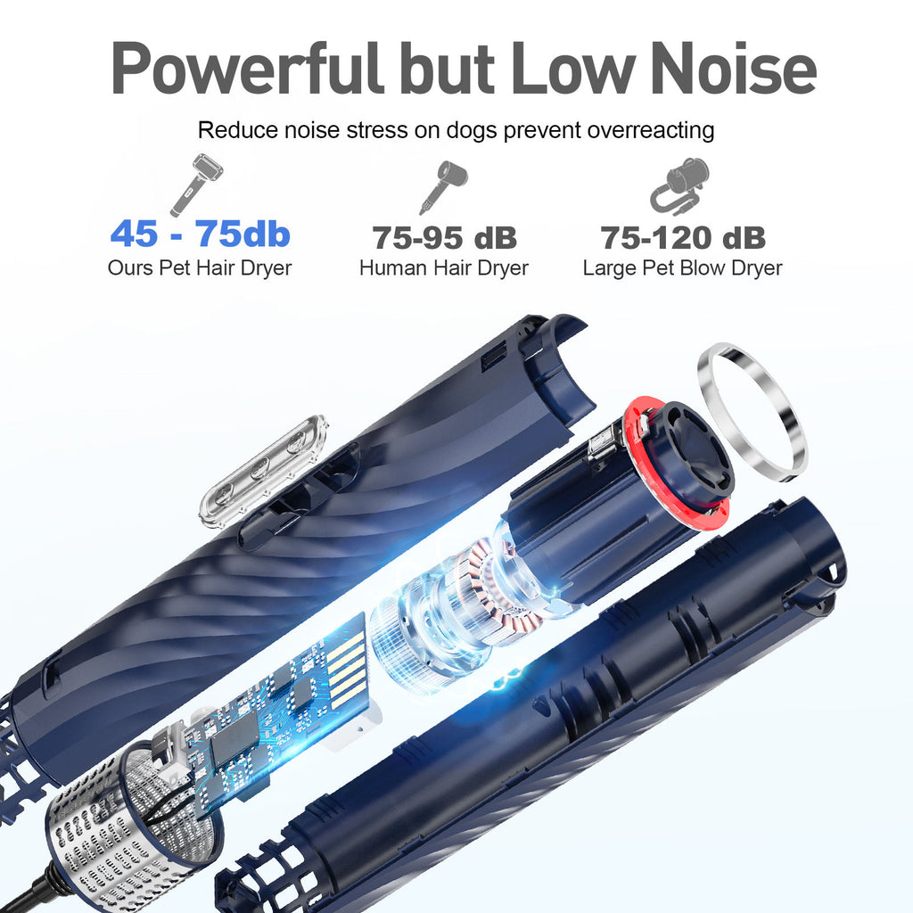 Dry your furry friend quickly and comfortably with this Portable Pet Hair Dryer, built for efficient home grooming. Featuring three adjustable temperature settings and a 360° rotatable wind head, it lets you control airflow direction and intensity to suit your pet’s needs. The four interchangeable nozzles help target different coat types—from quick drying to deep fluffing—making it ideal for cats and dogs of all sizes. Compact, quiet, and easy to handle, this dryer ensures a stress-free grooming experience.