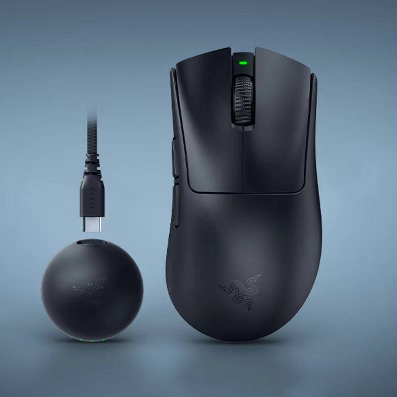 The Razer DeathAdder V4 Pro is the newest evolution of Razer’s most iconic gaming mouse line, trusted by millions of esports athletes and PC gamers worldwide. Designed for elite competitive play, it combines Razer’s legendary ergonomic shape with state-of-the-art hardware: a 45,000 DPI Focus Pro sensor, HyperPolling 8KHz wireless, and an ultra-lightweight 56 g frame.